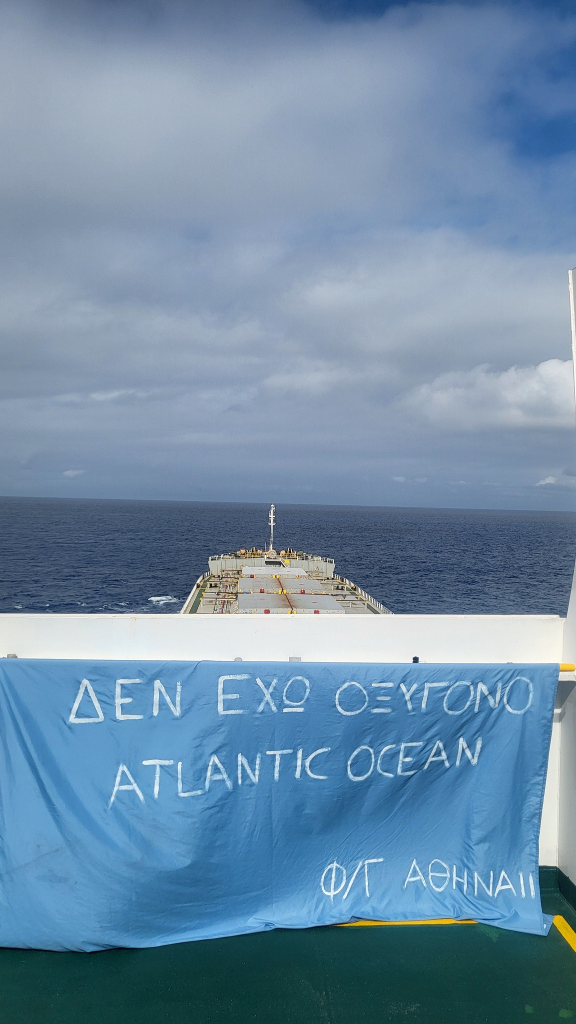 «Δεν έχω οξυγόνο Atlantic Ocean Φ/Γ Αθήνα ΙΙ» ανέφερε το πανό όπως μπορείτε να δείτε και στη σχετική φωτογραφία που δημοσιεύτηκε στην ομάδα «Σύλλογος Συγγενών Θυμάτων Τεμπών 2023» στο Facebook.