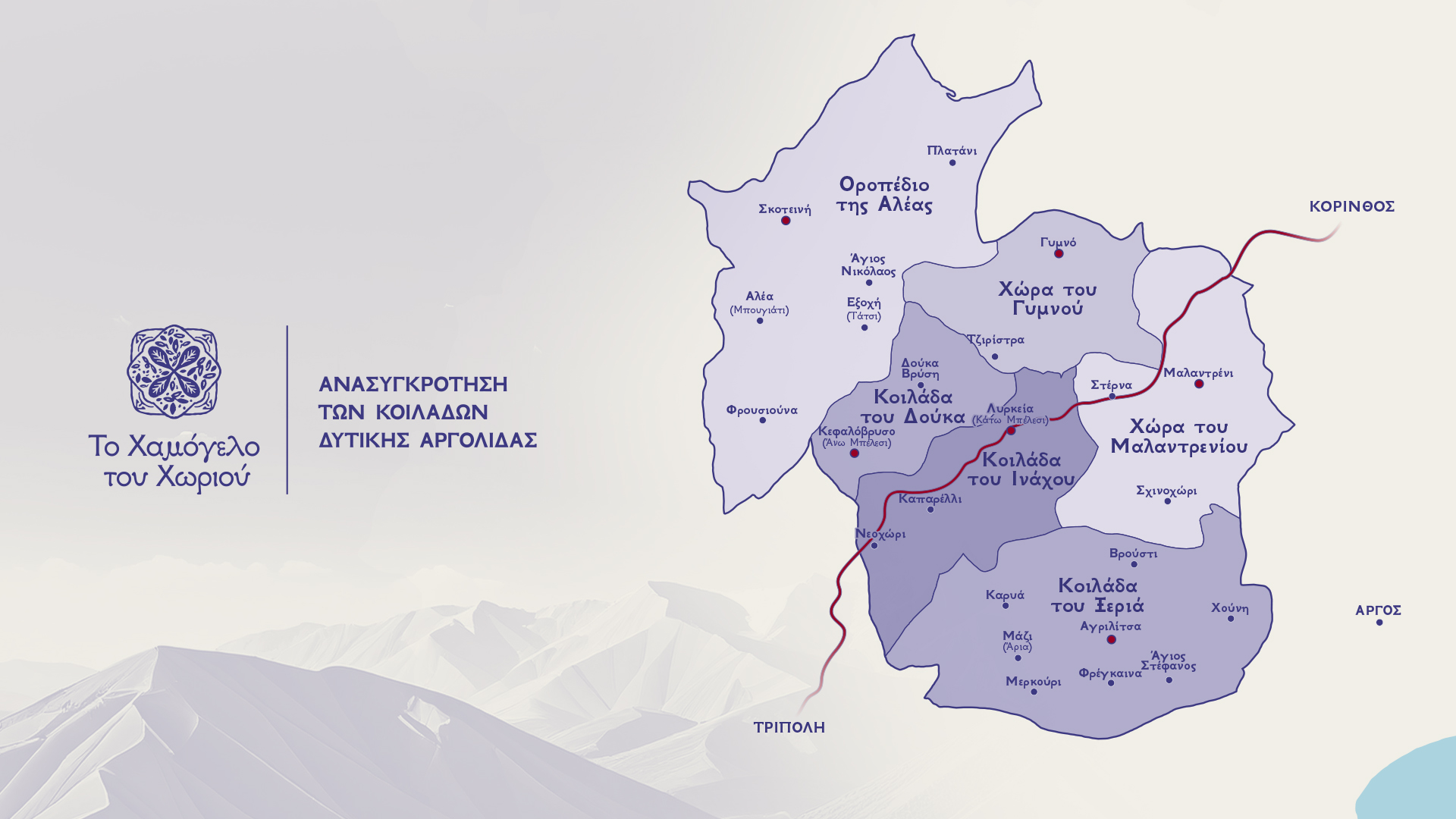 «Πιο πριν, δεν υπήρχε καν όνομα να περιγράψει την περιοχή. Όλοι οι ντόπιοι ήξεραν κάποια χαρακτηριστικά που τη διαφοροποιούν από το Άργος, αλλά δεν μπορούσαν να ξεχωρίσουν ποια χωριά ανήκουν στην περιοχή και ποια όχι», θυμάται ο Φίλιππος. «Οπότε, ξεκινήσαμε από τα πολύ βασικά: να φτιάξουμε μία ταυτότητα τόπου, να ορίσουμε ποια χωριά αποτελούν την περιοχή και να δώσουμε ένα όνομα». Έτσι, γεννήθηκαν οι «κοιλάδες δυτικής Αργολίδας», τις οποίες θα προσπαθήσουν τώρα να προωθήσουν μέσω του «Χαμόγελου». «Όλα τα χωριά εδώ γύρω βρίσκονται σε κοιλάδες με ποτάμια, που με τη σειρά τους περικυκλώνονται από βουνά. Ήταν μονόδρομος, νομίζω το όνομα», εξηγεί ο συνομιλητής μας.