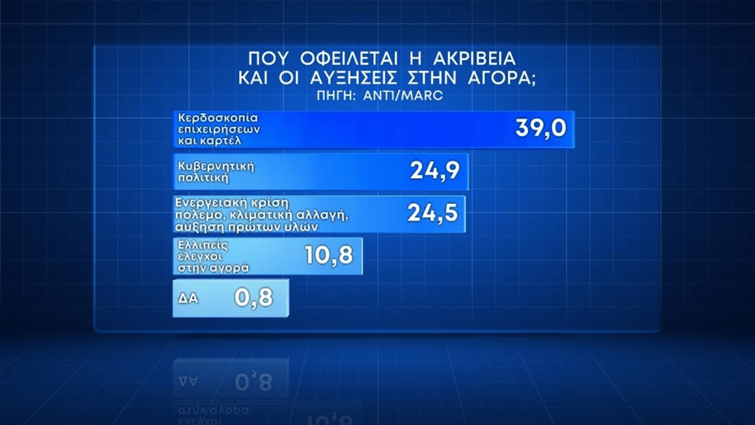Για το θέμα της ακρίβειας τα αποτελέσματα της δημοσκόπησης έδειξαν oι πολίτες θεωρούν ότι οφείλεται στην: