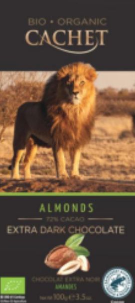 Α) «ΣΟΚΟΛΑΤΑ ΜΑΥΡΗ ΑΜΥΓΔΑΛΟ 72% ΚΑΚΑΟ» με εμπορική ονομασία «CACHET» σε συσκευασία των 100g, με αριθμό παρτίδας 22343 και ημερομηνία ελάχιστης διατηρησιμότητας 09/03/2024 με ενδεικτική φωτογραφία: