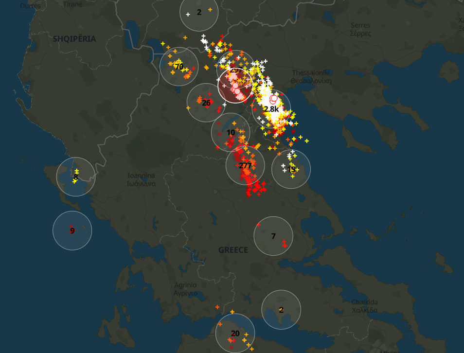 Στο μεταξύ, όπως καταγράφει το γκρουπ «Weather Analysis Greece» στο Facebook, σχεδόν 3.000 κεραυνοί έπεσαν στην Πιερία.