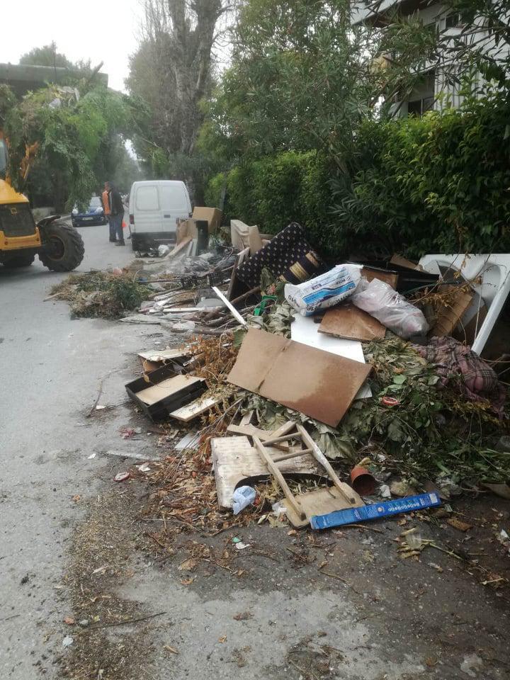Αρκετά φορτία τριαξονικών φορτηγών απομάκρυναν από τα πεζοδρόμια οικιακά απορρίμματα και οικοδομικά υλικά, που εμπόδιζαν τη διέλευση των πεζών για πολλούς μήνες.
