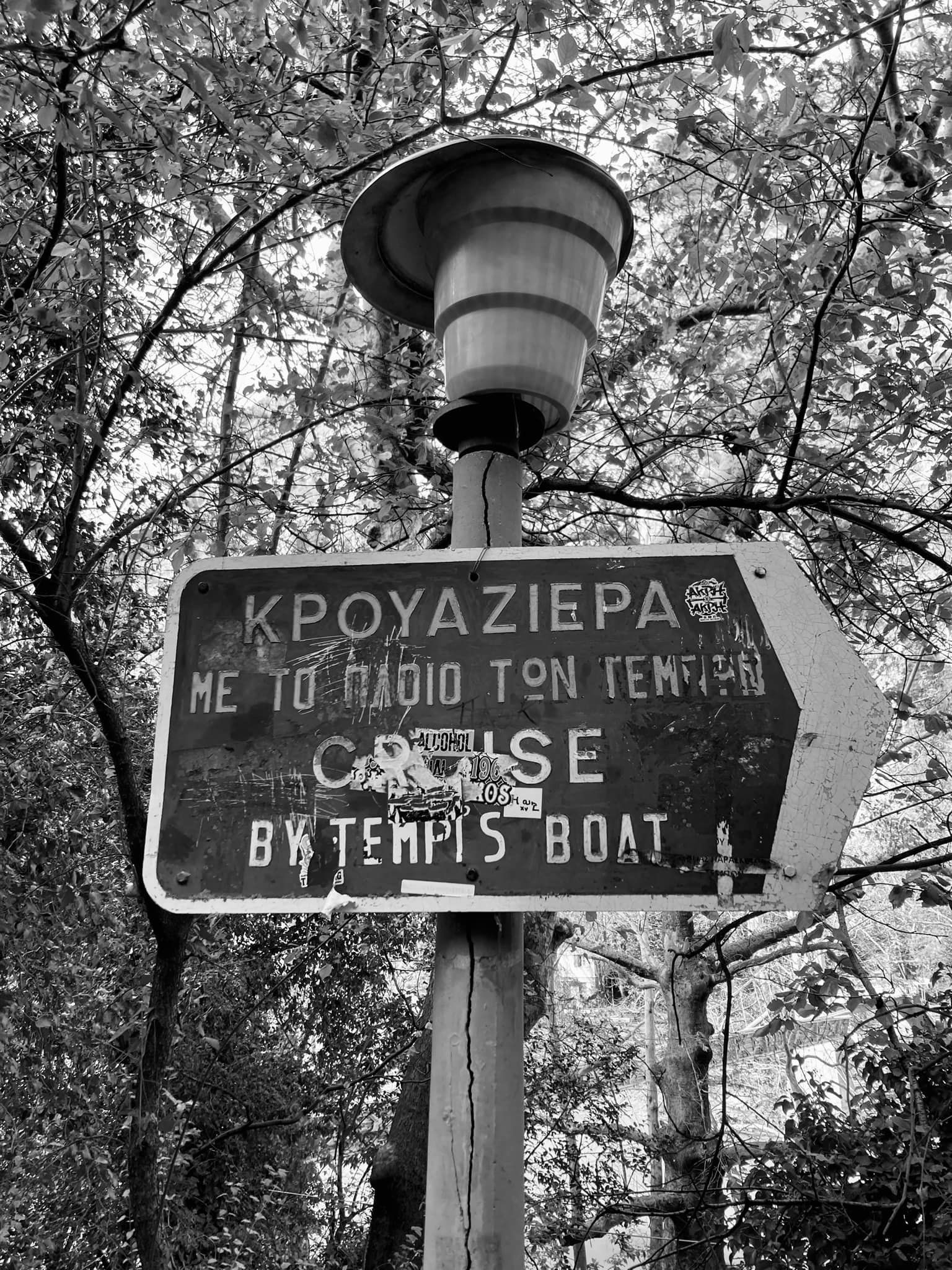 Η ταμπέλα για την «Κρουαζιέρα με το πλοίο των Τεμπών» κάνει ακόμη πιο μελαγχολικό το ήδη στενάχωρο τοπίο…