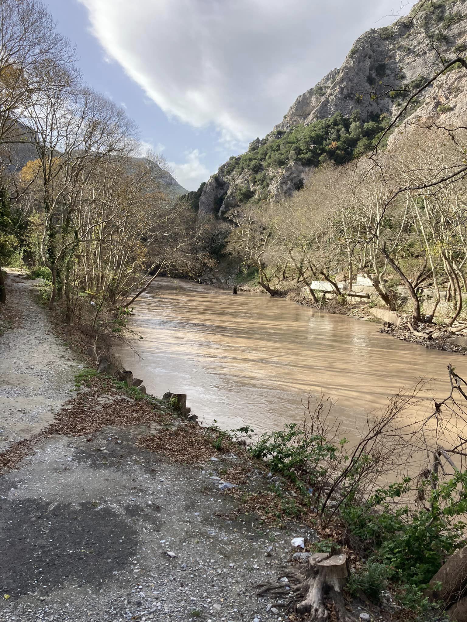 Από κάτω περνάει ο Πηνειός που είναι ακόμη γεμάτος λάσπες.