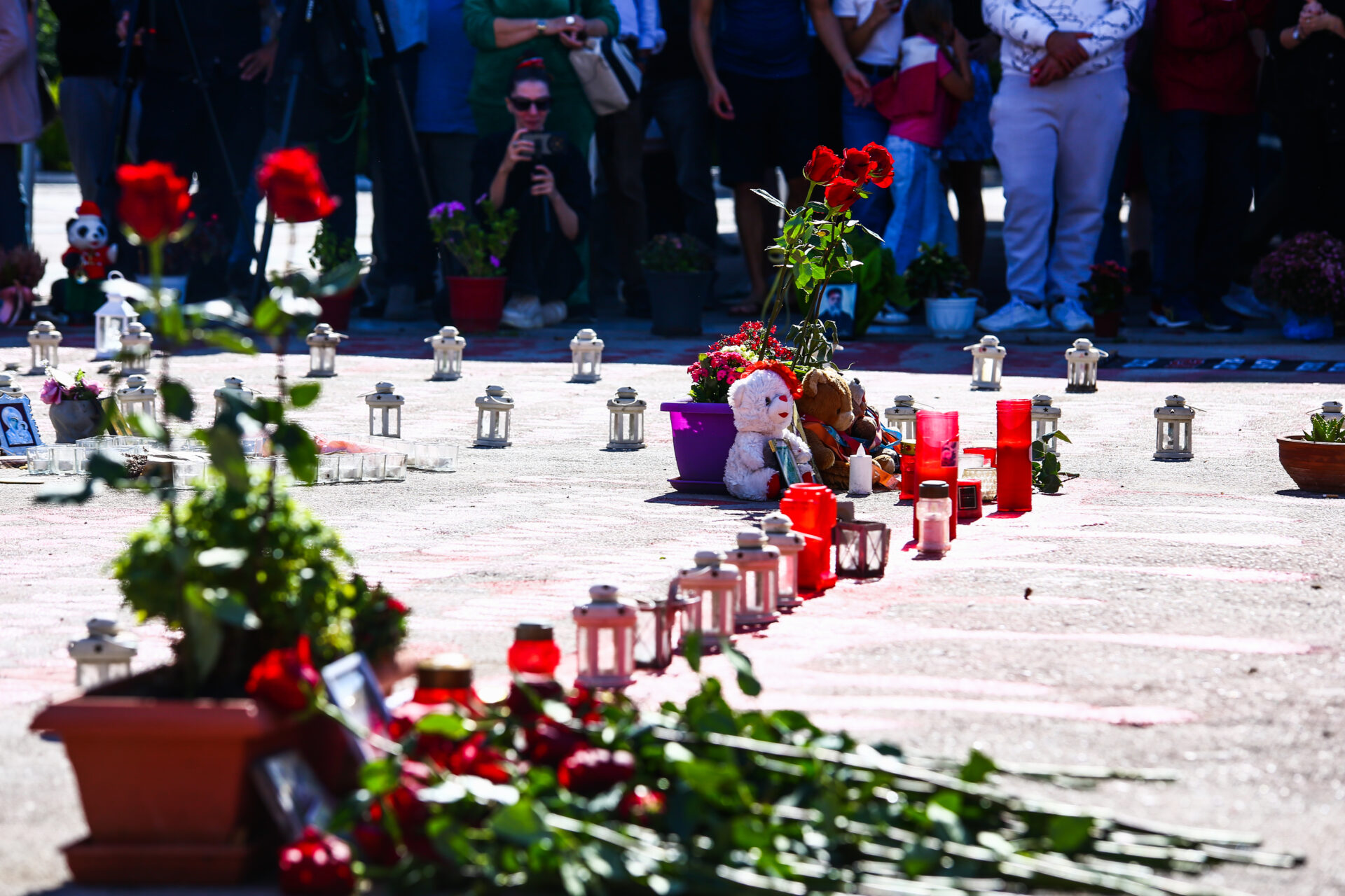Πολίτες που παρακολουθούσαν την παρέλαση, συγγενείς θυμάτων αλλά και τουρίστες άρχισαν να πλησιάζουν το σημείο για να αφήσουν ένα λουλούδι, αποτίοντας φόρο τιμής.