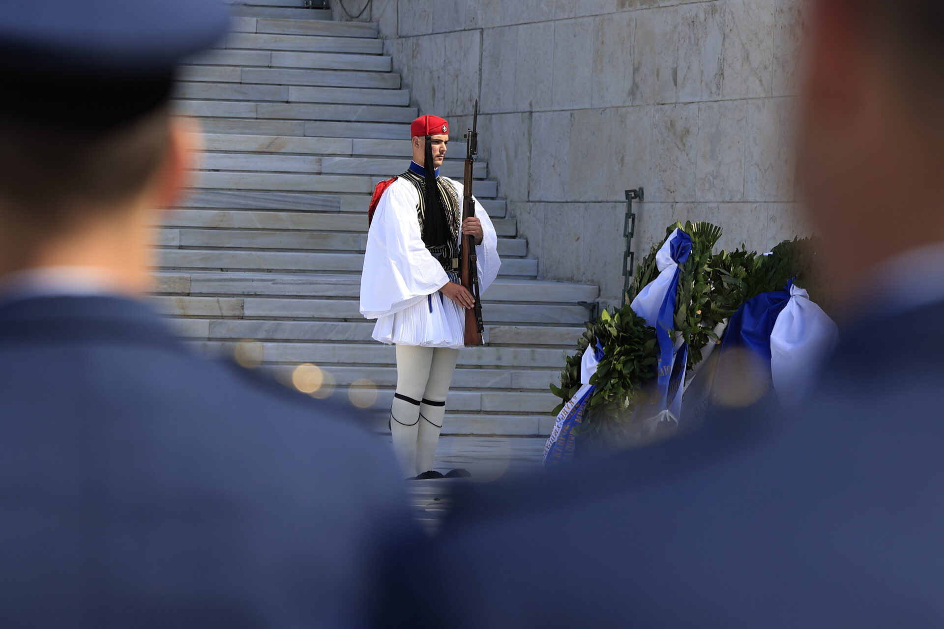 Περισσότεροι από 1.000 μαθητές από 230 σχολεία, παρέλασαν το μεσημέρι της Κυριακής μπροστά από το Μνημείο του Αγνώστου Στρατιώτη. Λίγες ώρες πριν ξεκινήσει η παρέλαση, η πολιτική και στρατιωτική ηγεσία της χώρας κατέθεσε στεφάνια στο Μνημείο του Άγνωστου Στρατιώτη στην πλατεία Συντάγματος.