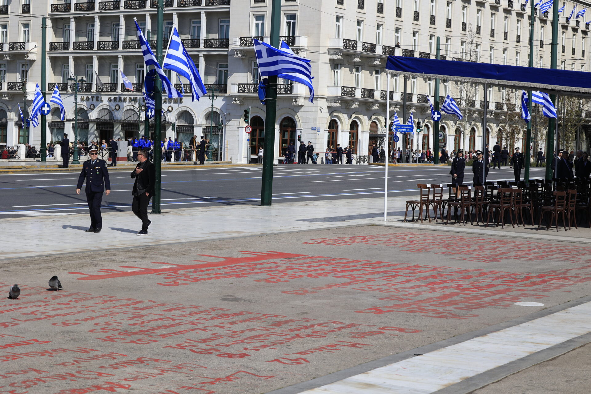 Σημειώνεται ότι οι εκδηλώσεις θα κορυφωθούν αύριο, Δευτέρα (25/3) με τη στρατιωτική παρέλαση στο κέντρο της πόλης, ενώ ύστερα από εντολή της αστυνομίας κλειστός παραμένει σήμερα και αύριο ο σταθμός του Μετρό στο Σύνταγμα.