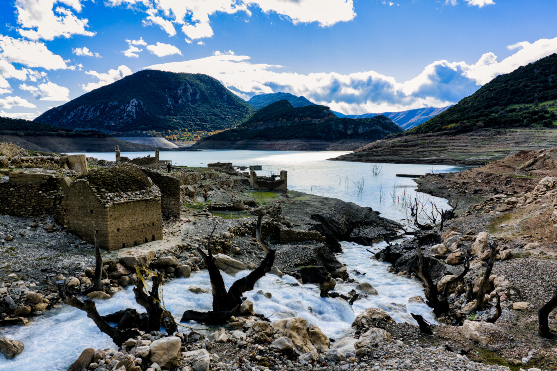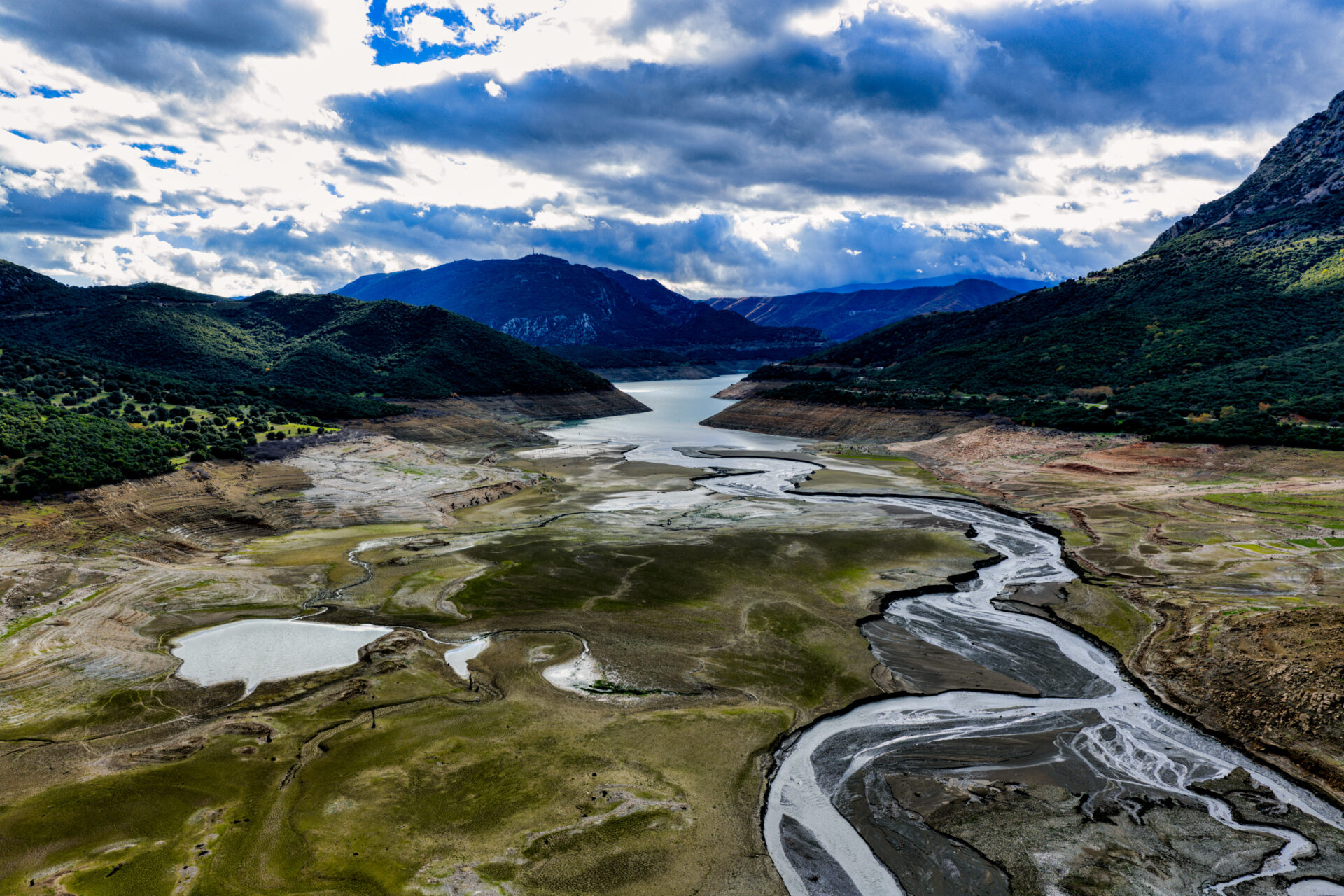 ΕΙΚΟΝΕΣ: Παρά τις έντονες βροχοπτώσεις η λίμνη του Μόρνου στεγνώνει