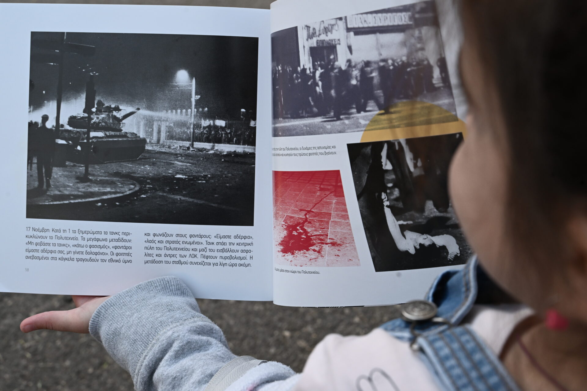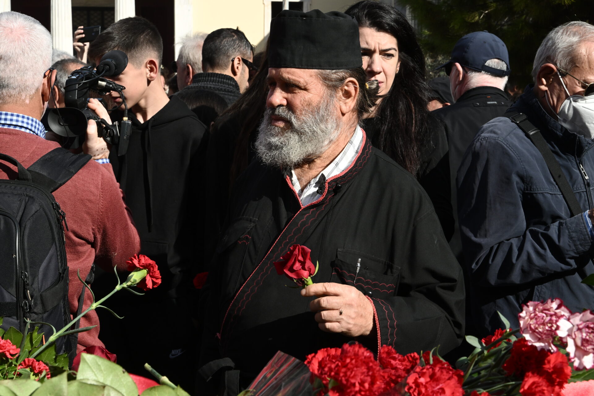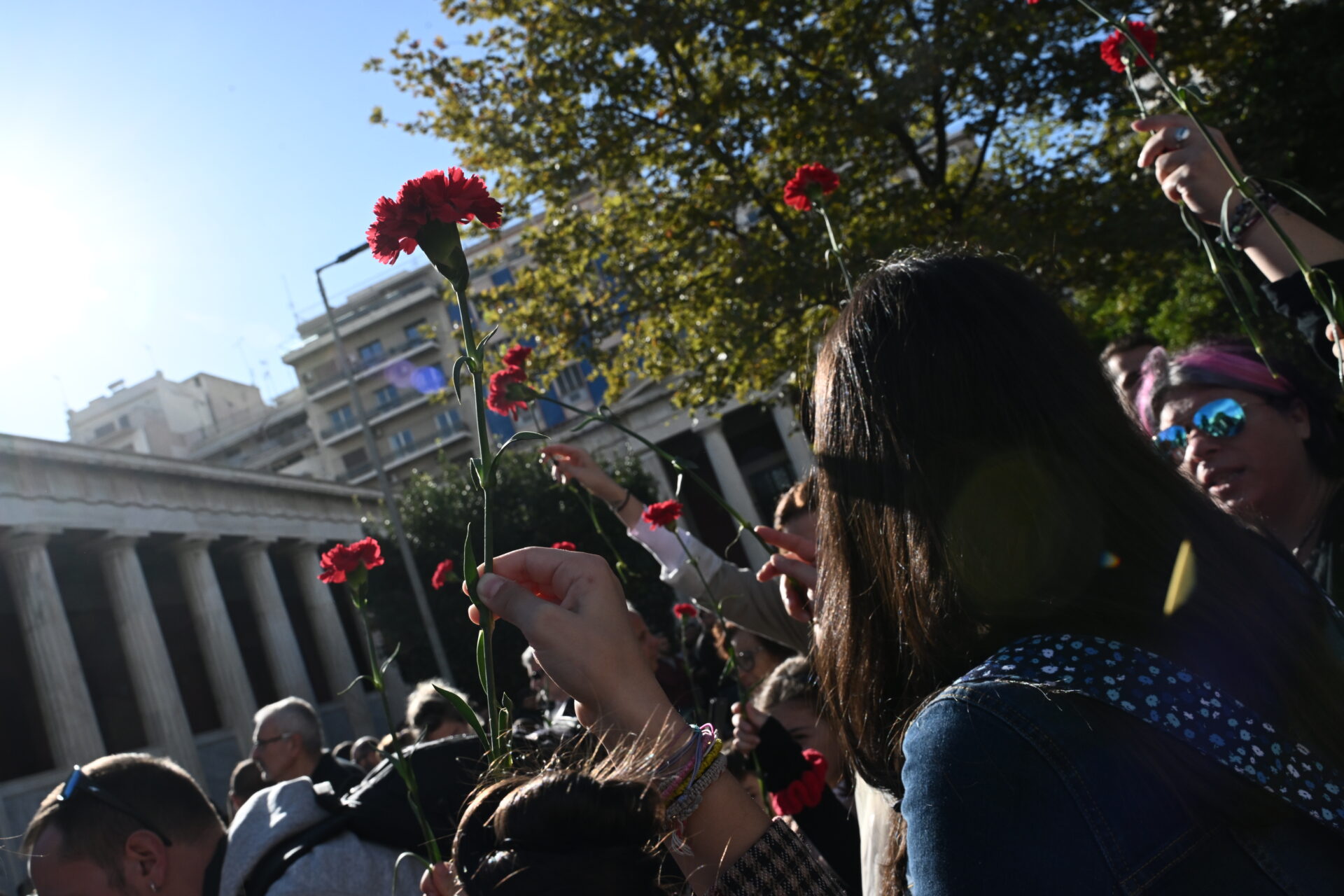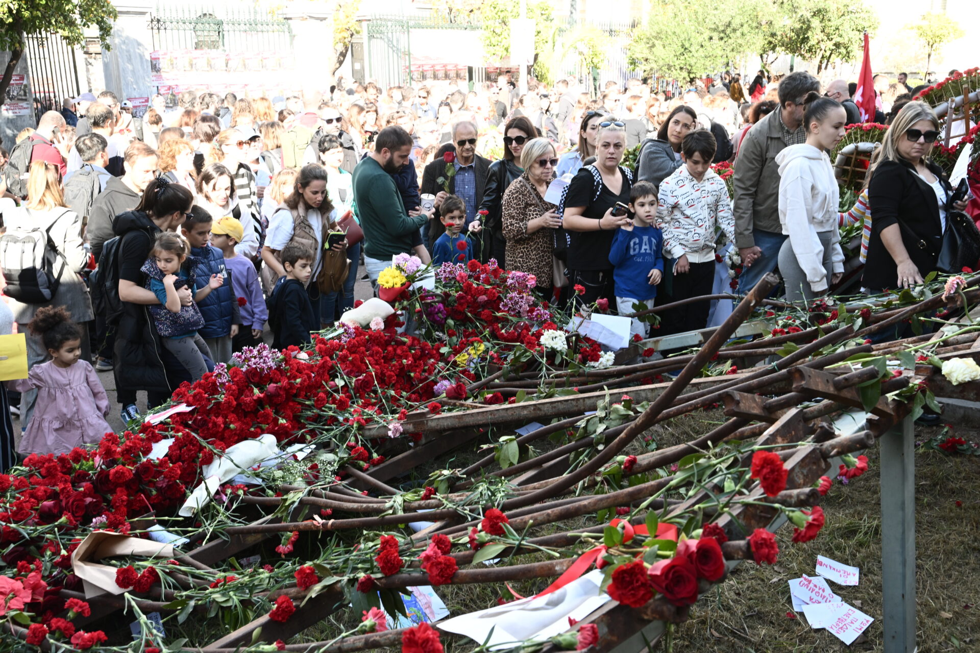 Άνθρωποι όλων των ηλικιών, ακόμη και μικρά παιδιά μπήκαν στο προαύλιο του εκπαιδευτικού ιδρύματος, εκεί όπου πριν από 50 χρόνια χιλιάδες φοιτητές και πολίτες έζησαν την εξέγερση.
