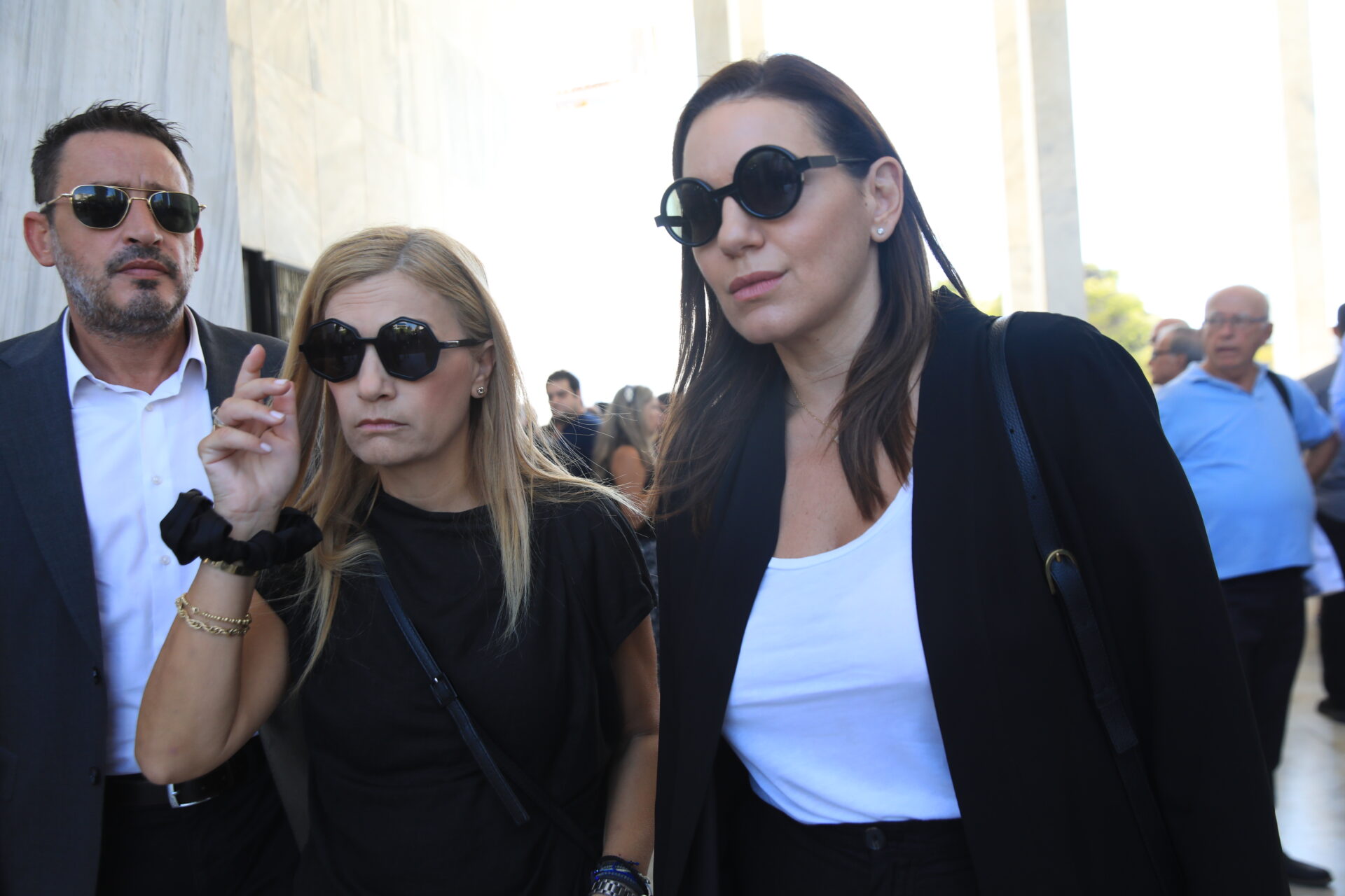 Η μητέρα της Λένας Σαμαρά, φορώντας μαύρα, δεν μπόρεσε να συγκρατήσει τα δάκρυα στα μάτια της.