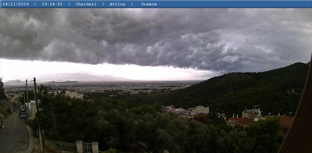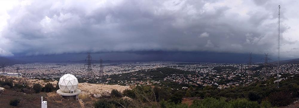 Κατά τη διέλευση του ψυχρού μετώπου πάνω από τη Δυτική Αττική, σχηματίστηκε ένα εντυπωσιακό shelf cloud που καταγράφηκε από μετεωρολογικές κάμερες, επιλεγμένα στιγμιότυπα από τις οποίες ακολουθούν.