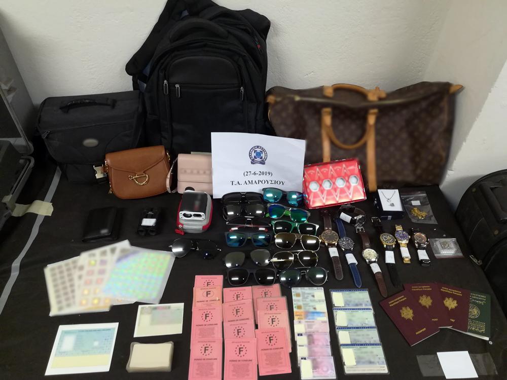 Από την Αστυνομία κατασχέθηκε πλήθος ηλεκτρονικών συσκευών, αποσκευών και πορτοφολιών δεκάδες διαβατήρια, ταυτότητες και άδειες οδήγησης διαφόρων κρατών, τηλεκοντρόλ, διαρρηκτικά εργαλεία και το χρηματικό ποσό των 21.660 ευρώ, ενώ οι συλληφθέντες οδηγήθηκαν στον εισαγγελέα.
