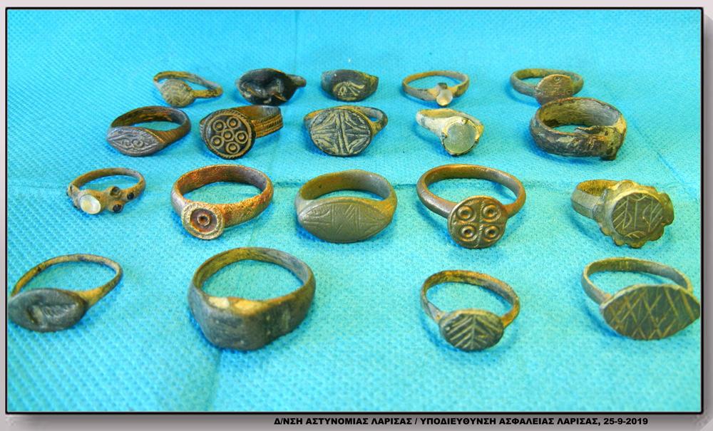 Κατά τη διάρκεια νομότυπων ερευνών, κατασχέσαμε μεγάλο αριθμό αντικειμένων, τα οποία σύμφωνα με τις εκτιμήσεις των Αρχαιολόγων της Εφορείας Αρχαιοτήτων Λάρισας εμπίπτουν στη νομοθεσία περί προστασίας των αρχαιοτήτων και εν γένει της πολιτιστικής κληρονομιάς, συσκευές ηλεκτρονικής ραβδοσκοπίας – ανίχνευσης μετάλλων, όπλα και φυσίγγια.