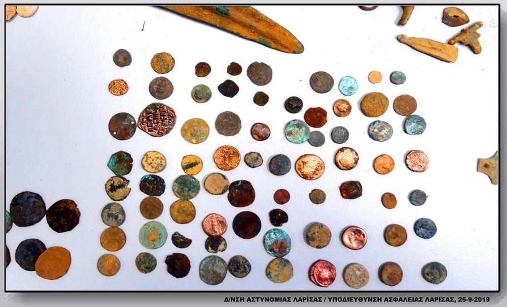 πληθώρα αντικειμένων και νομισμάτων αρχαίων, βυζαντινών, ρωμαϊκών και νεότερων χρόνων μεγάλης αρχαιολογικής αξίας,