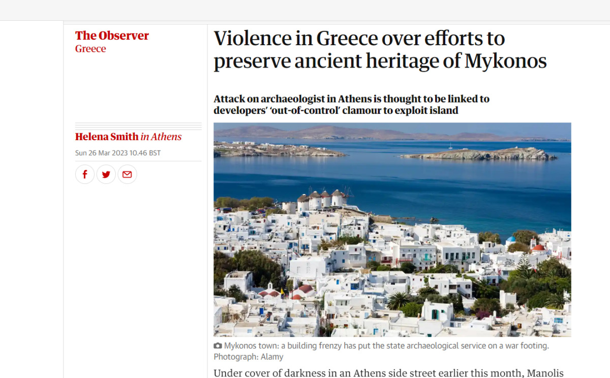 Μάλιστα, το βρετανικό μέσο, συνδέει επίσης και την επίθεση που δέχτηκε ο αρχαιολόγος Μανώλης Ψαρρός με την «εκτός ελέγχου» κατάσταση που επικρατεί στο νησί από όσους «θέλουν να το εκμεταλλευτούν».