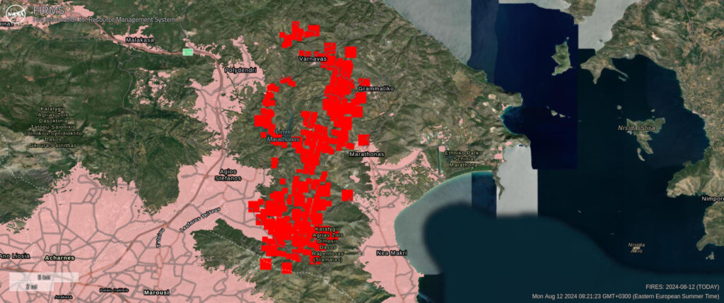 Πύρινο μέτωπο 30 χιλιομέτρων στη βορειοανατολική Αττική – Σοκάρει ο χάρτης της NASA