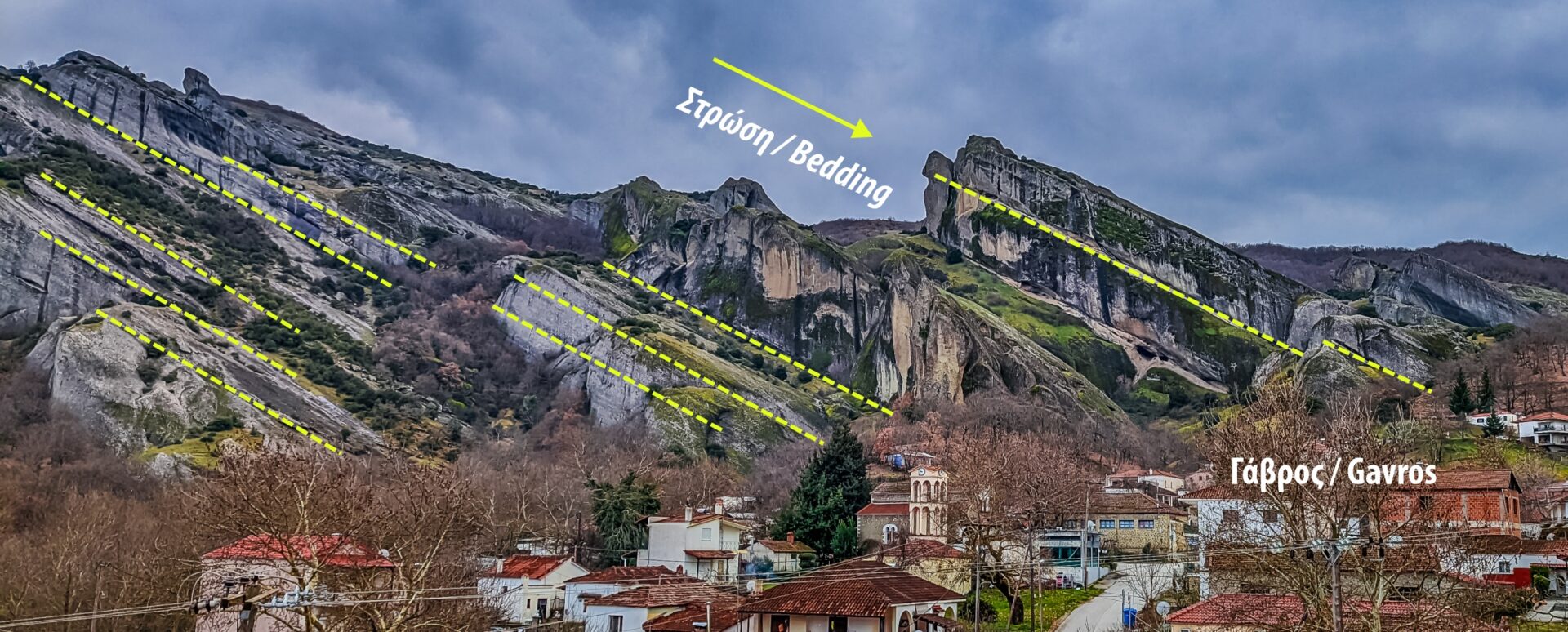 Η πιο πρόσφατη τεκτονική δραστηριότητα άνοιξε ασυνέχειες στο πέτρωμα, ρήγματα που επέτρεψαν στο νερό να περνάει και να διαβρώνει για χιλιάδες χρόνια τα ιζήματα. Έτσι γεννήθηκαν οι οδοντωτοί, σμιλεμένοι σχηματισμοί που σήμερα υψώνονται πάνω από το χωριό.