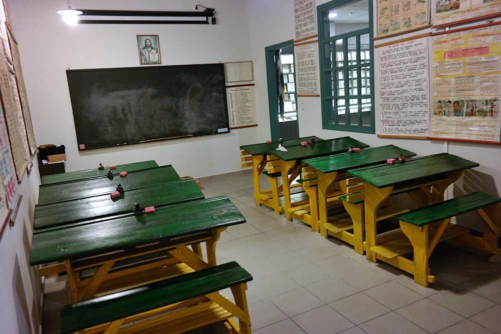 Από ένα χώρο αφιερωμένο στην ελληνική εκπαίδευση, δεν θα μπορούσε να λείπει η παλιά σχολική αίθουσα, που ξυπνά αναμνήσεις από τα μαθητικά και ανέμελα χρόνια. Μια ειδικά διαμορφωμένη αίθουσα διδασκαλίας με τα παλιά ξύλινα θρανία, τον μαυροπίνακα και τους παλιούς χάρτες στους τοίχους, τις παλιές ενδυμασίες των μαθητών, μεταφέροντας τον επισκέπτη σε μια άλλη εποχή. Επίσης, ο επισκέπτης έχει τη δυνατότητα να γράψει στην πλάκα με το κοντύλι και να δοκιμάσει να γράψει με μελάνι και πένα χρησιμοποιώντας μελανοδοχείο, κονδυλοφόρο και στυπόχαρτο. Στην αίθουσα των Μετεώρων εκτίθενται χαρακτικά και γκραβούρες περιηγητών που επισκέφθησαν τα Μετέωρα κατά τον 18ο και 19ο αιώνα. Φωτογραφίες των Μετεώρων από τον φημισμένο Γάλλο- Ελβετό φωτογράφο Boissonas και τους Βολιώτες φωτογράφους Στέφανο και Νικόλαο Στουρνάρα, καθώς και παλιά ξενόγλωσσα περιοδικά που αναφέρονται στα Μετέωρα. Χρησιμοποιώντας τις παλιές στερεοσκοπικές μηχανές, που υπάρχουν στο χώρο του μουσείου, o επισκέπτης μπορεί να δει τρισδιάστατα παλιές φωτογραφίες των Μετεώρων. Ακόμα υπάρχουν ειδικές προβολές στις αίθουσες του Μουσείου σχετικά με την Ιστορία και την εξέλιξη της γραφής , την ιστορία της τυπογραφίας , τον Νεοελληνικό διαφωτισμό, τους Ολυμπιακούς αγώνες, τους Μύθους του Αισώπου και την Ελληνική Μυθολογία.