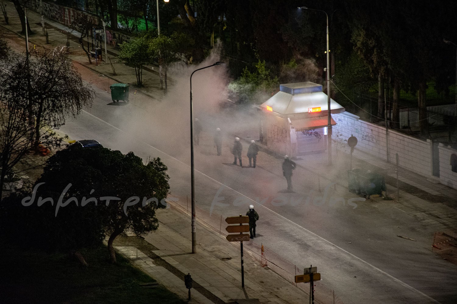 Ο πετροπόλεμος μεταφέρεται και μέσα στα πανεπιστήμια και η ατμόσφαιρα είναι αποπνικτική καθώς όλη η περιοχή έχει γεμίσει καπνογόνα και οι κάτοικοι αντιμετωπίζουν ήδη αναπνευστικά προβλήματα.