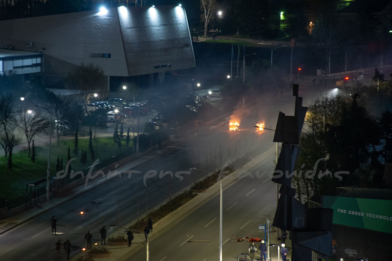 Υπάρχει ανταλλαγή μολότοφ και καπνογόνων ανάμεσα σε αστυνομικούς και διαδηλωτές στο ύψος της ΔΕΘ στην Εγνατία αλλά και στην Αγίου Δημητρίου όπου φλέγονται κάδοι.