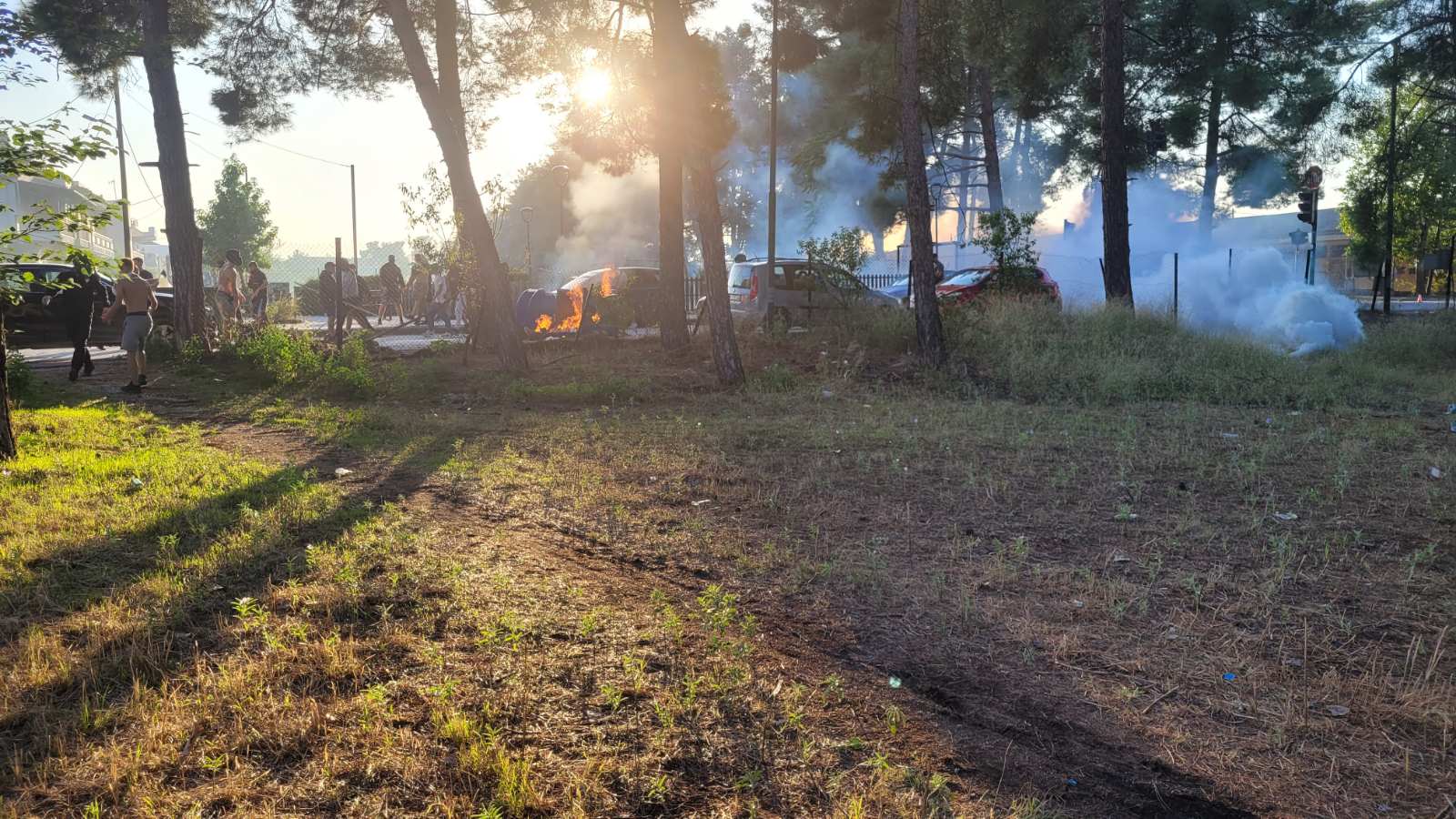 Σύμφωνα με πληροφορίες του onlarissa.gr, το θερμόμετρο ανέβηκε όταν κάποιοι επιχείρησαν να ξεφουσκώσουν τα λάστιχα λεωφορείου της αστυνομίας.