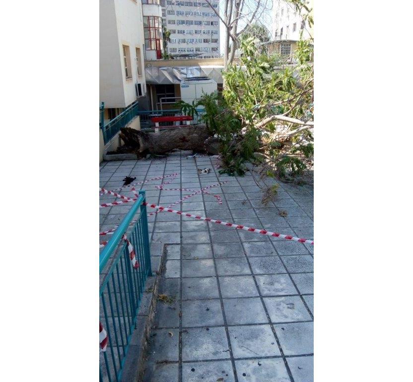 Το Σωματείο είχε προειδοποιήσει για τον κίνδυνο που υπάρχει να πέσουν δέντρα στο προαύλιο χώρο του Νοσοκομείου επειδή δεν υπάρχουν χρήματα να τα περιποιηθούν (κλάδεμα κλπ).