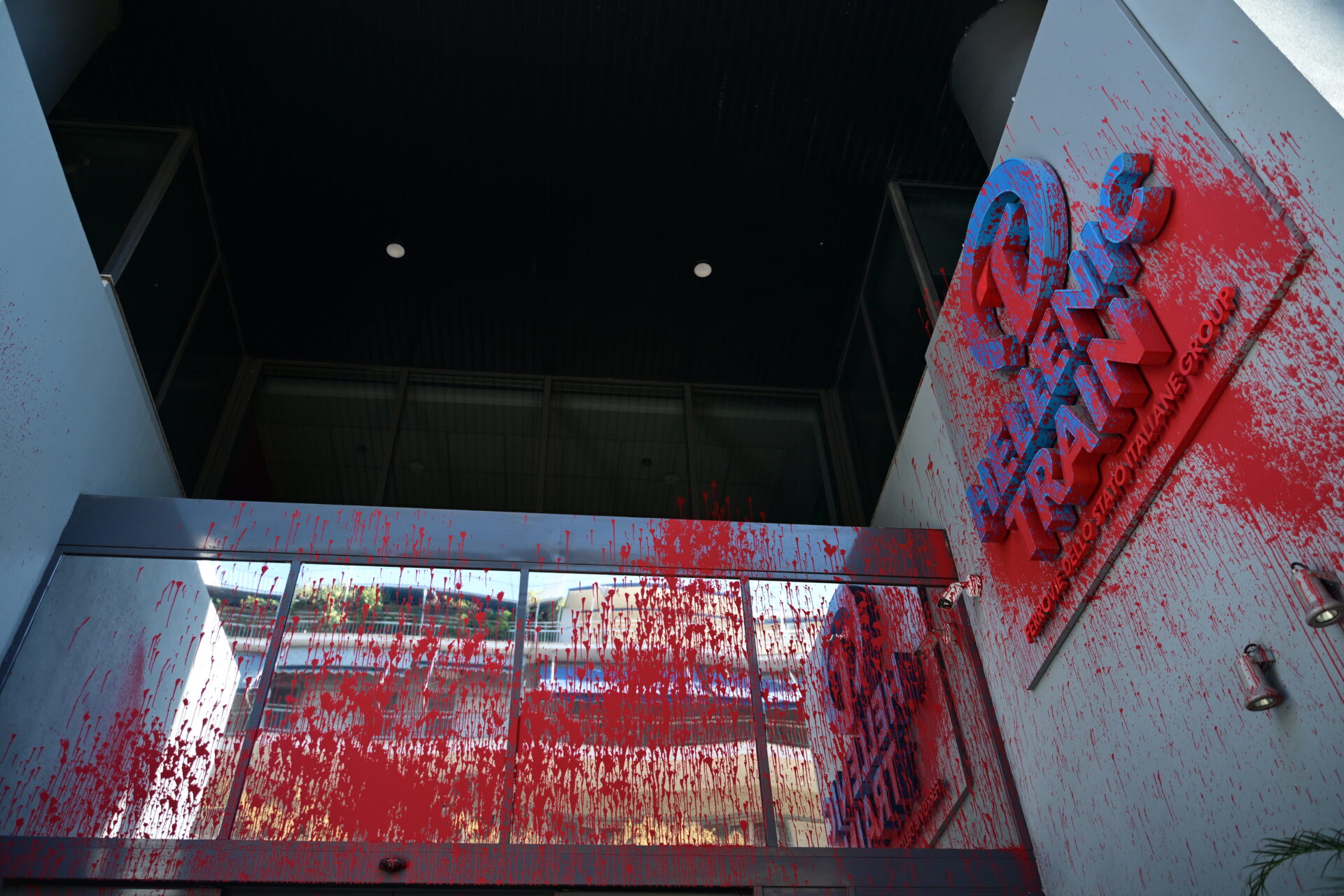 Το αποτέλεσμα ήταν να σπάσουν τζάμια, ενώ στη συνέχεια εκτόξευσαν και κόκκινες μπογιές με χρήση πυροσβεστήρων.