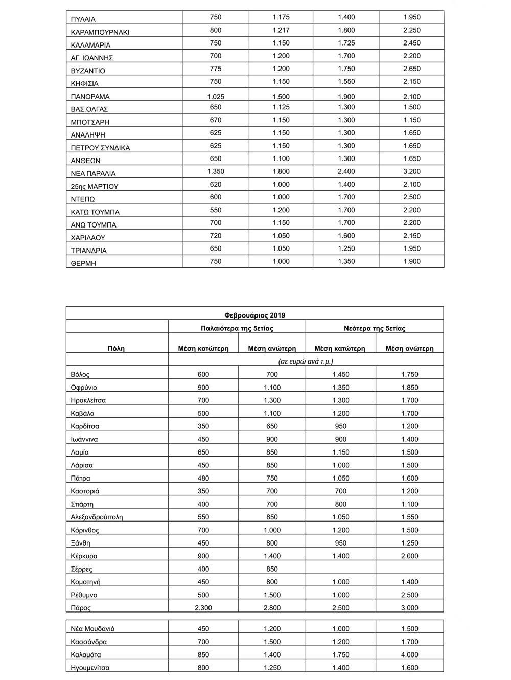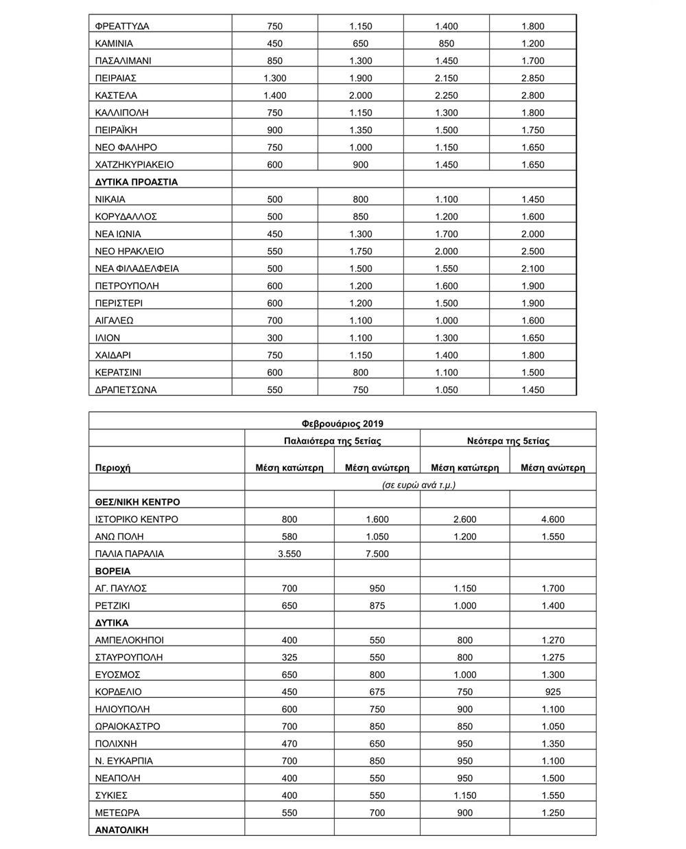 *Oι πίνακες, με τις τιμές ανά τετραγωνικό μέτρο για τις κατοικίες στις περιοχές της Ελλάδας που δραστηριοποιούνται γραφεία του δικτύου της RE/MAX, με βάση τις πωλήσεις ακινήτων που πραγματοποίησε το δίκτυο στην χώρα το 2018.