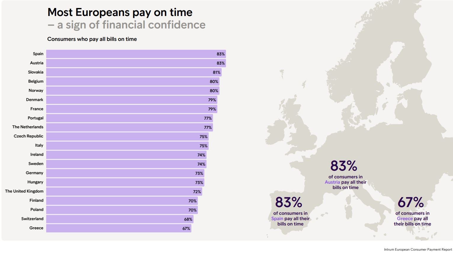 Η έρευνα πληρωμών της Intrum, πραγματοποιήθηκε τον Αύγουστο του 2025, σε δείγμα 20.000 καταναλωτών από 20 χώρες