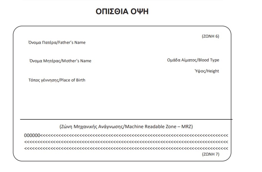 - Στην οπίσθια όψη θα περιλαμβάνονται τα εξής στοιχεία: