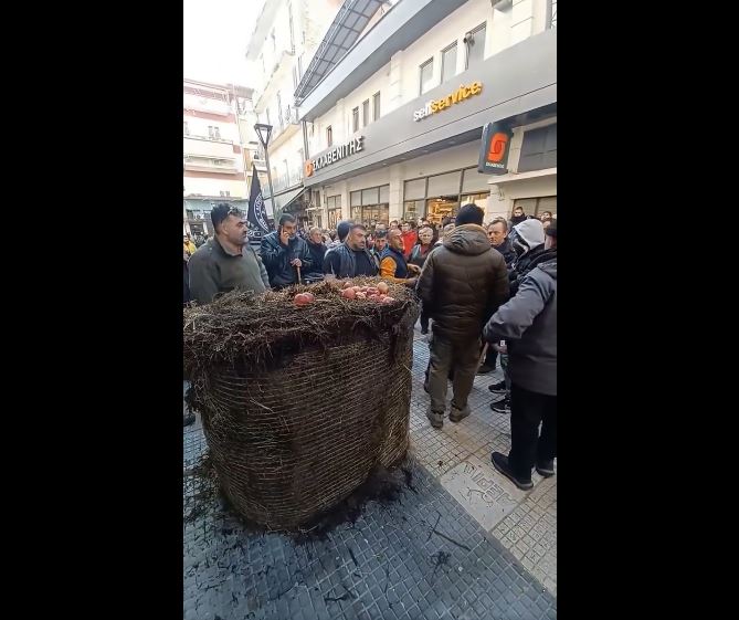 Φλώρινα: Αγρότες πέταξαν άχυρο και κοπριά έξω από το γραφείο του βουλευτή της ΝΔ
