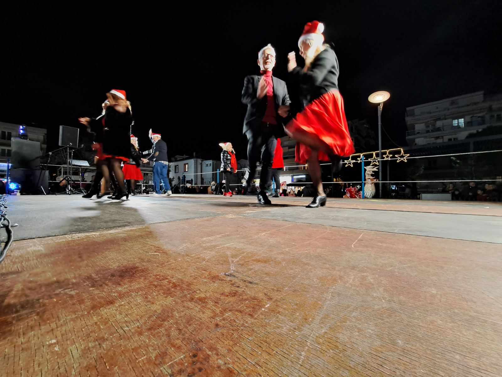 Παρά το τσουχτερό κρύο, η πλατεία ήταν κατάμεστη από κόσμο, που με χαρά άκουσε τα χριστουγεννιάτικα τραγούδια από κλιμάκιο της παιδικής χορωδίας του Δήμου Καλαμαριάς και παρακολούθησε τους χορούς που παρουσίασε ο πολιτιστικός σύλλογος «Καλλίστη».