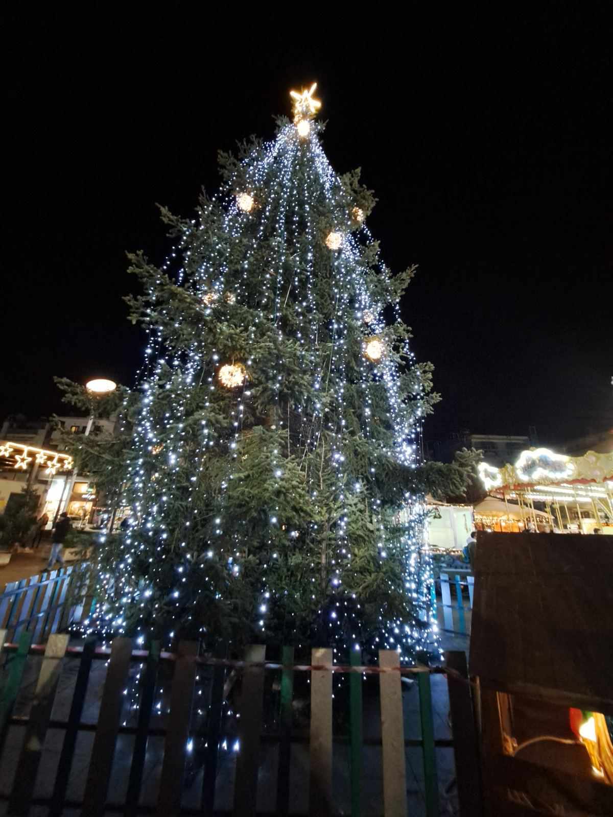 Τα γιορτινά της φόρεσε η Καλαμαριά για να υποδεχτεί τα Χριστούγεννα. Φωταγωγήθηκε το χριστουγεννιάτικο δέντρο, ύψους 12 μέτρων.