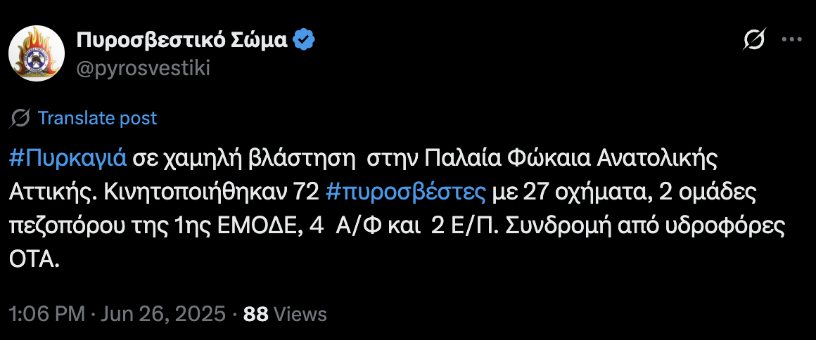 «Αν βρίσκεστε στην περιοχή απομακρυνθείτε προς Λαγονήσι. Παραμείνετε σε ετοιμότητα και ακολουθείτε τις οδηγίες των Αρχών»