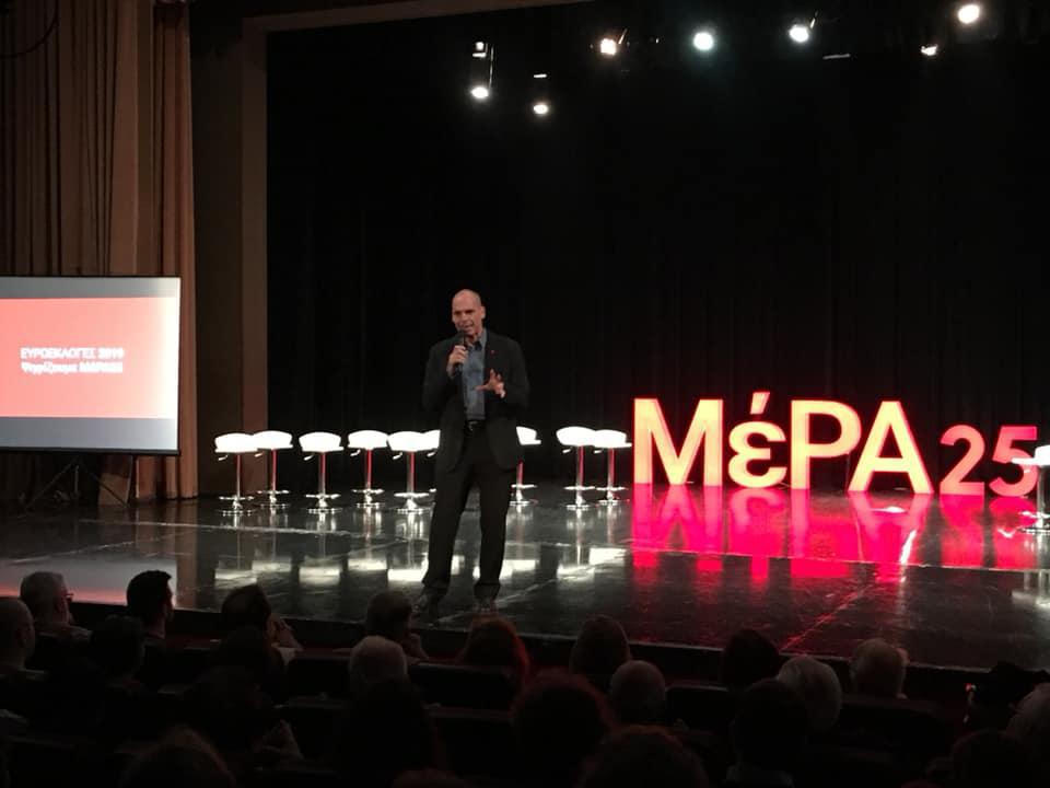 “Το ΜέΡΑ25 θα διεκδικήσει την ψήφο των Ελλήνων πολιτών και στις Ευρωεκλογές και στις Εθνικές εκλογές και οι πολίτες θα το εμπιστευτούν για να σταματήσει πραγματικά το καθεστώς της «χρεοδουλοπαροικίας» ένας «όρκος τιμής για τα παιδιά μας που φεύγουν αλλά και για τους γονείς που μένουν» γιατί βέβαια «ουδέποτε αφήσαμε πίσω μας το μνημόνιο» σημείωσε ο κ. Βαρουφάκης.