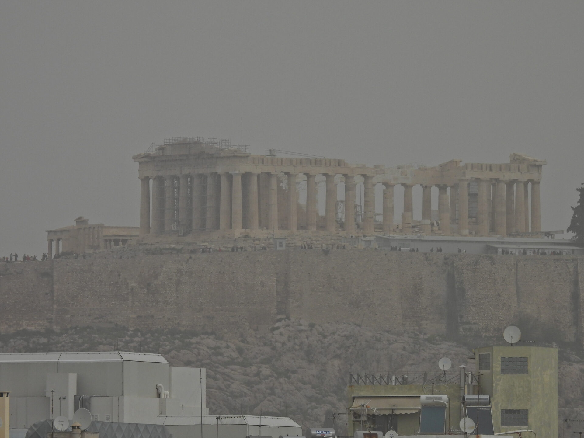 Παρακάτω μπορείτε να δείτε την Αθήνα όπως σπάνια την αντικρίζουμε: τυλιγμένη στους κόκκους της άμμου που ταξίδεψαν χιλιάδες χιλιόμετρα από τη Σαχάρα για να «σκεπάσουν» την καθημερινότητά μας.