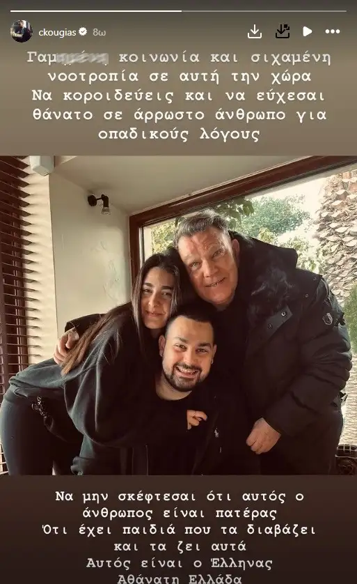 Ο Χρήστος Κούγιας ανέβασε μία οικογενειακή φωτογραφία με τον πατέρα και την αδελφή του χρησιμοποιώντας σκληρή γλώσσα.