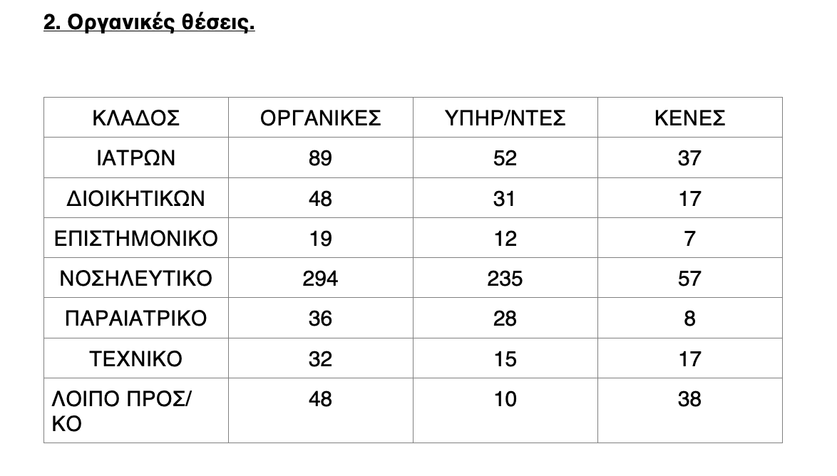 Ανάλογες ελλείψεις υπάρχουν και στο νοσηλευτικό, παραϊατρικό, διοικητικό και λοιπό προσωπικό του Νοσοκομείου μας.