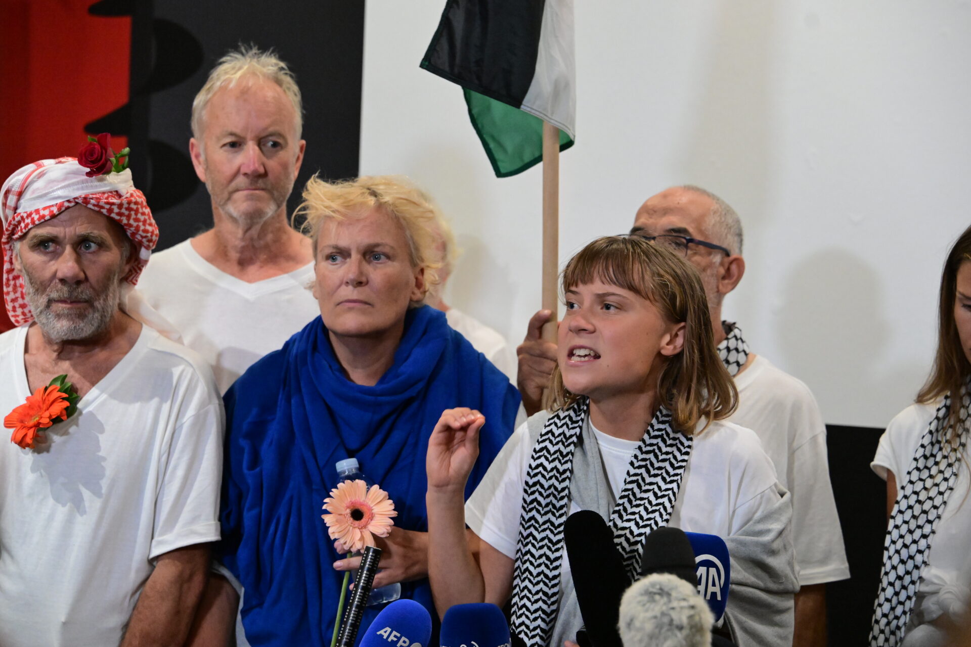 «Επιτρέψτε μου να είμαι πολύ σαφής: μια γενοκτονία συμβαίνει μπροστά στα μάτια μας, μια γενοκτονία που μεταδίδεται ζωντανά σε όλα τα κινητά » είπε ο Σουηδή ακτιβίστρια Γκρέτα Τούνμπεργκ ξεκινώντας τις δηλώσεις της προς τους δημοσιογράφους και πρόσθεσε: