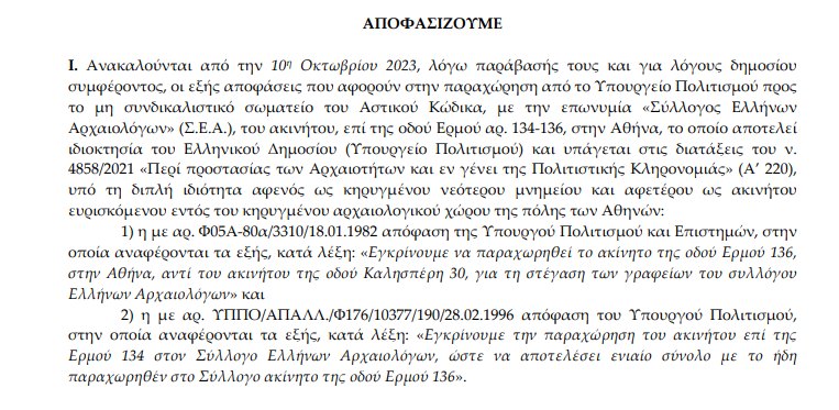 Με μια πρωτοφανή απόφαση η υπουργός Πολιτισμού που εδώ και χρόνια βρίσκεται σε μια πρωτοφανή διαμάχη με την αρχαιολογική κοινότητα της χώρας, κάνοντας τα πάντα για να απαξιώνει τη δουλειά τους και πρωτοστατώντας στις καταστροφές αρχαιοτήτων (Βενιζέλου) αν και αρχαιολόγος η ίδια προχωρά σε μια πρωτοφανή, εκδικητική και ανήκουστη απόφαση έξωσης του συλλόγου από το ιστορικό του κτίριο στο Βοτανικό.