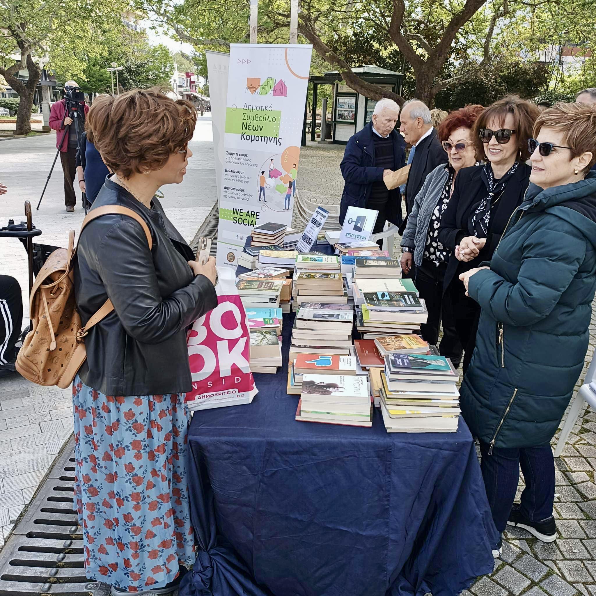 Τόσα πολλά βιβλία δεν περίμενα πως θα μαζευτούν. Για να πω την αλήθεια εγώ νόμιζα ότι θα μαζευτούν περίπου 100-150 βιβλία. Έλεγα ότι καθένας θα φέρει από ένα βιβλίο. Μου έκανε εντύπωση ότι ήρθε κόσμος με ολόκληρες σακούλες και σκέφτομαι πως αυτό σημαίνει ότι γενικότερα ο κόσμος διαβάζει και είχε περίσσεια βιβλίων στο σπίτι του. Δεν ήταν όλα από παλιές εκδόσεις, με την άποψη ότι ήθελαν να αδειάσουν τις βιβλιοθήκες τους, υπήρχαν και καινούργια βιβλία. Αυτό νομίζω είναι θετικό για το βιβλίο. Άρα προφανώς ο κόσμος της Κομοτηνής διαβάζει, πολύ περισσότερο απ’ ότι πιστεύαμε μέχρι τότε»