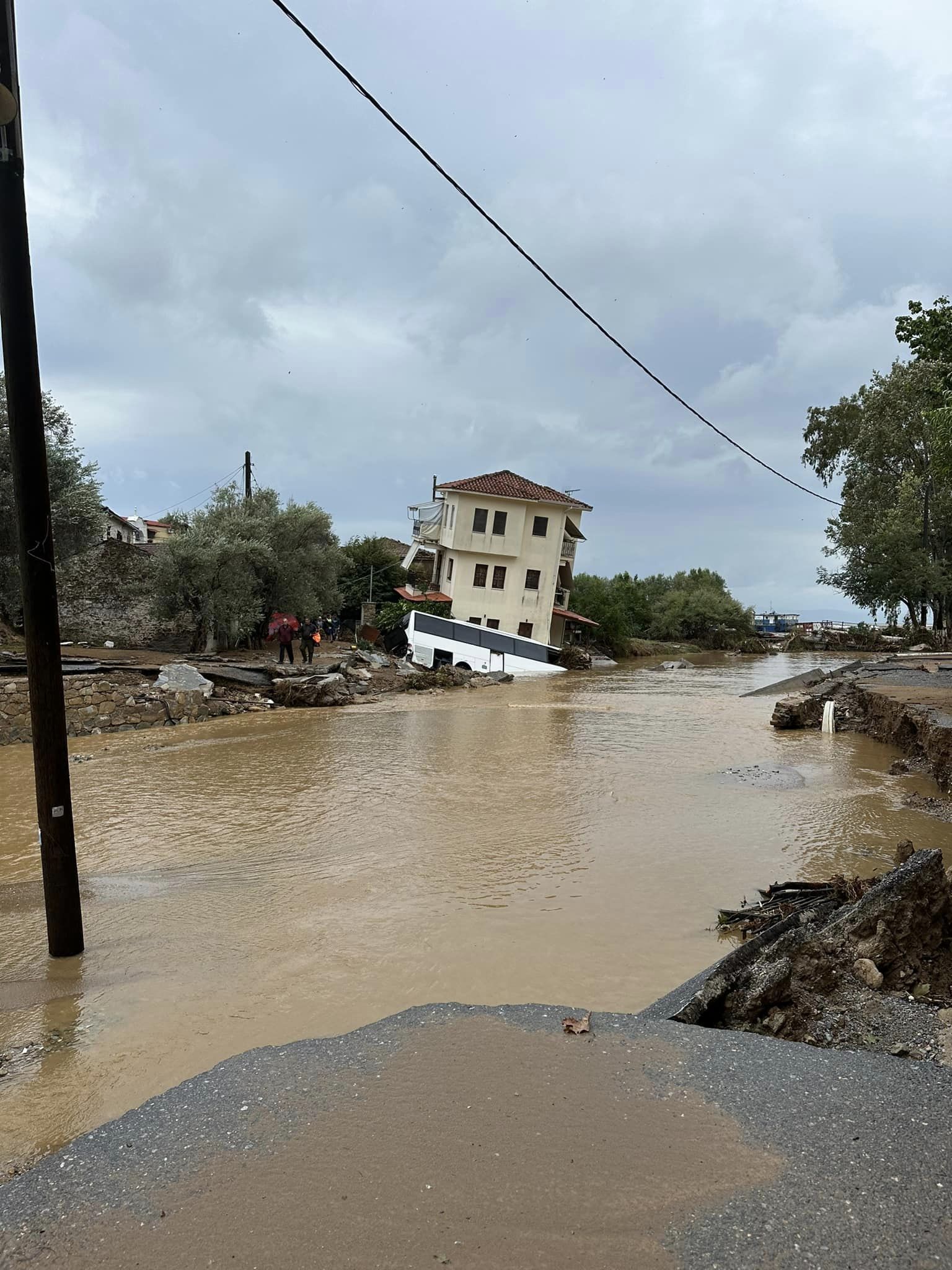 Κακοκαιρία Daniel: Δύσκολη νύχτα στη Θεσσαλία, εξασθένηση από το απόγευμα – Κλειστή η Εθνική Αθηνών – Θεσσαλονίκης-4 Με απόγνωση, κάτοικος του Πλατανιά Πηλίου κοιτάζει την απόκοσμη εικόνα. Ενα πούλμαν έχει παρασυρθεί και έχει σταματήσει σε ένα τριώροφο σπίτι, το οποίο επίσης έχει υποστεί ανυπολόγιστες καταστροφές από την κακοκαιρία.