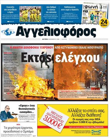 Σχολεία και αμφιθέατρα πανεπιστημίων έχουν αδειάσει από μαθητές και φοιτητές. Είναι όλοι στους δρόμους. Διαδηλώνουν για τον 15χρονο Αλέξη που έπεσε νεκρός από τη σφαίρα του Κορκονέα. Στο στόχαστρο μπαίνουν αστυνομικά τμήματα και τράπεζες στην Αθήνα, τη Θεσσαλονίκη και άλλες μεγάλες πόλεις.