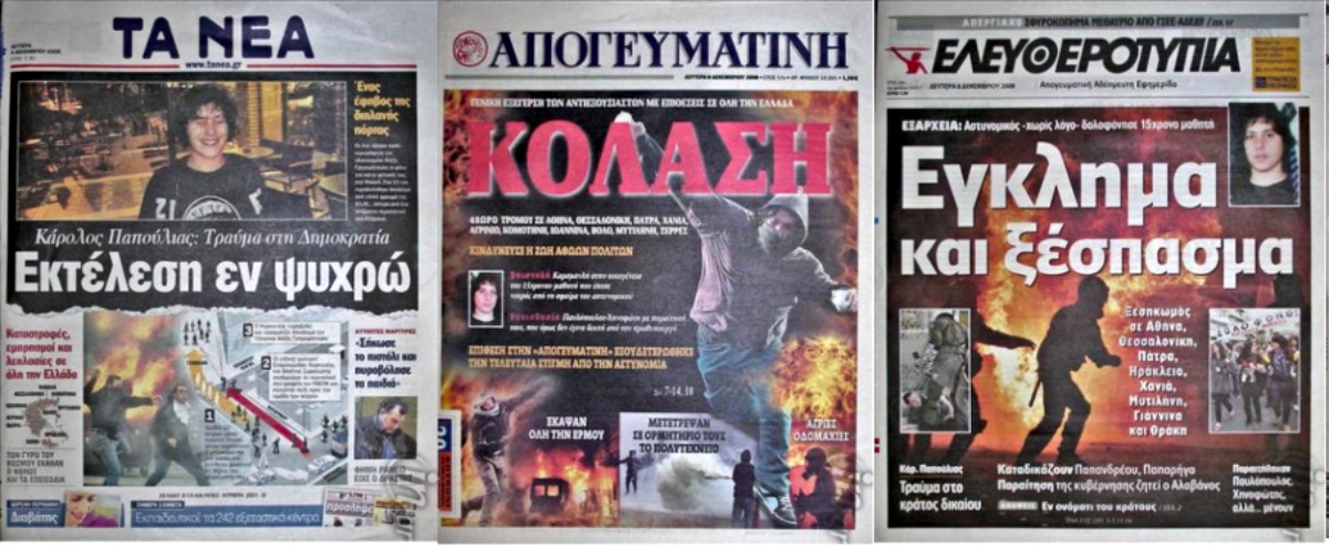 Συνολικά μία αδιαφορία του κράτους και των θεσμών απέναντί τους που έρχεται σε πλήρη αντίθεση με τις αγωνίες που πάντα έχουν οι νέοι/ες και έφηβοι/ες. Έρχεται λοιπόν η δολοφονία ενός 15χρονου, «ενός από εμάς», από αστυνομικό όργανο και μάλιστα δίχως καμία αιτία. Δίχως να έχει προκαλέσει σε τίποτα το θύμα. Αυτό δεν αποτέλεσε απλά της θρυαλλίδα της εξέγερσης. Ήταν ένα τεράστιο πλήγμα για τη νεολαία, μια προσβολή της ήδη τρωθείσας αίσθησης του δικαίου και της ασφάλειας»