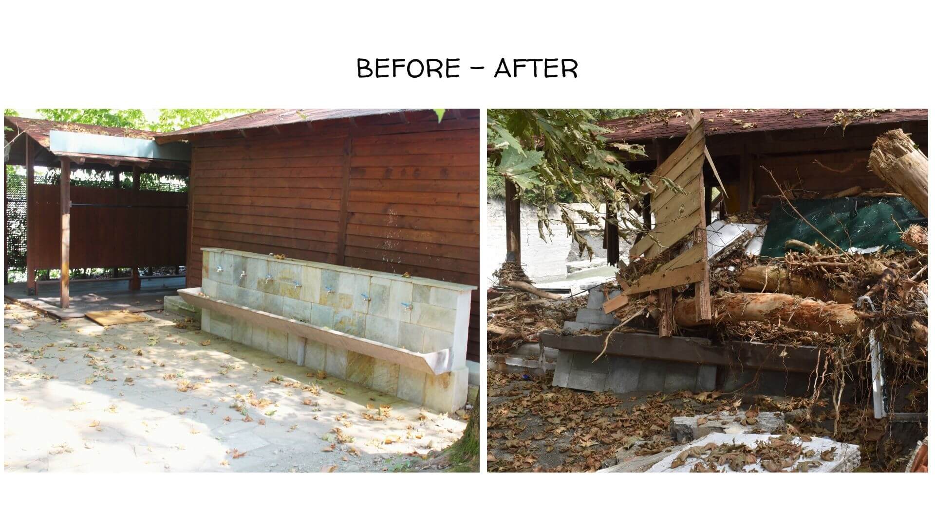 *Οι φωτογραφίες είναι από την σελίδα της ΧΑΝΘ που εικονίζουν το πριν και μετά από την έλευση της κακοκαιρίας στην κατασκήνωση