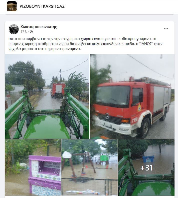 Ενδεικτικές είναι οι φωτογραφίες που ανέβασε κάτοικος στο Ριζοβούνι Καρδίτσας, σημειώνοντας χαρακτηριστικά ότι «ο ΙΑΝΟΣ ήταν ψιχάλα μπροστά στο σημερινό φαινόμενο».