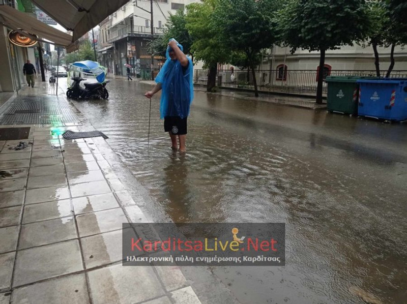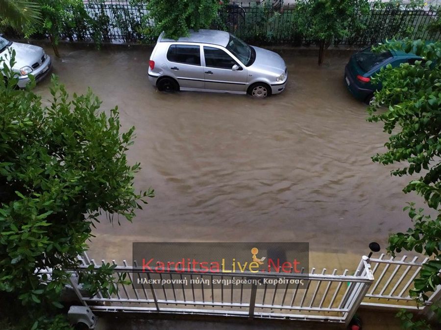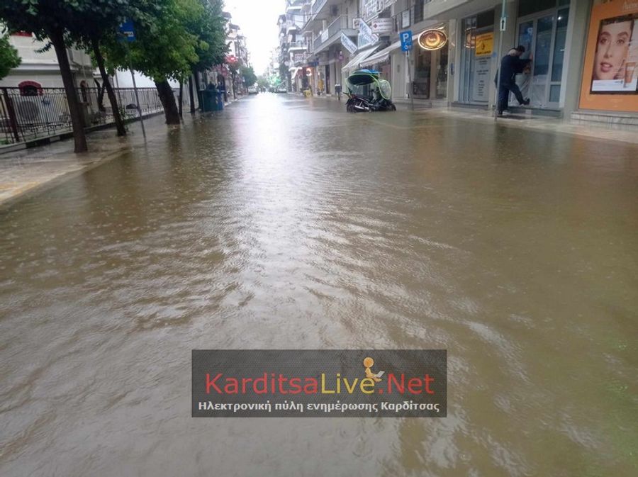 Μέσα στην πόλη της Καρδίτσας υπάρχουν ήδη πλημμυρικά φαινόμενα, που έχουν ξυπνήσει μνήμες Ιανού στους κατοίκους.