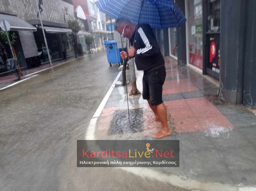 Με κάθε μέσο κάτοικοι στην πόλη της Καρδίτσας, προσπαθούν να καθαρίσουν τα φρεάτια. Οι δρόμοι όμως έχουν ήδη μετατραπεί σε ποτάμια.