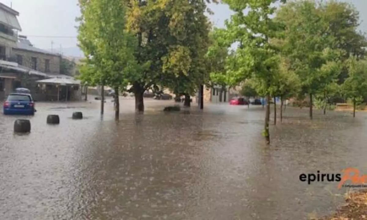 Αλλά και στα Γιάννενα, οι δρόμοι έγιναν ποτάμια, το νερό μπήκε και σε σπίτια, ενώ ξηλώθηκαν στέγες και έπεσαν δέντρα.