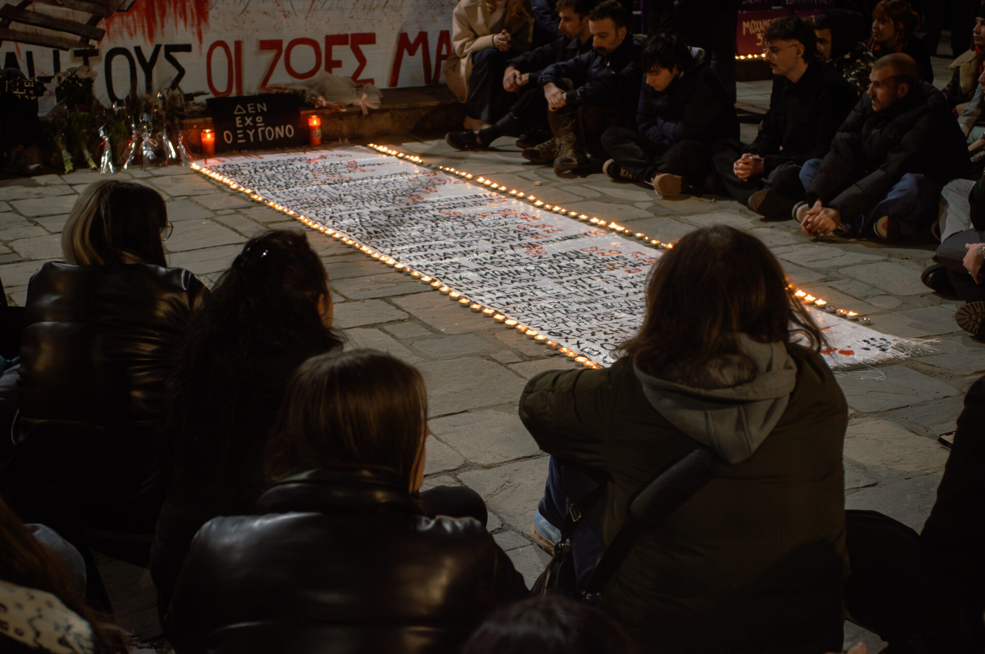 Με κεντρικό μήνυμα «Τα Τέμπη δεν σιγούν – Ο αγώνας συνεχίζεται – Η Καστοριά συμμετέχει» εκατοντάδες άνθρωποι, κυρίως νέοι σε ηλικία, βρέθηκαν το βράδυ της Τετάρτης έξω από το Δημαρχείο της Καστοριάς στην συμβολική καθιστική διαμαρτυρία διάρκειας 57 λεπτών.